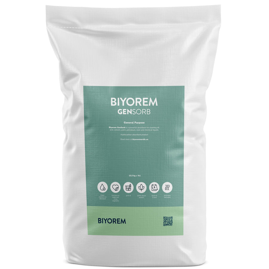 Gensorb är en kraftfull, biologisk och 100 % naturlig oljeabsorbent för sanering av petroleum- och oljerelaterade föroreningar på hårda ytor. Produkten appliceras enkelt, absorberar 5–6 gånger sin egen vikt och kapslar effektivt in oljan utan att läcka eller lämna rester. Gensorb är patenterad, tillverkad av förnybara råvaror och ger en torr och ren yta utan filmbeläggning, helt utan behov av rengörings- eller lösningsmedel – en miljövänlig, snabb och kostnadseffektiv lösning för säker sanering.